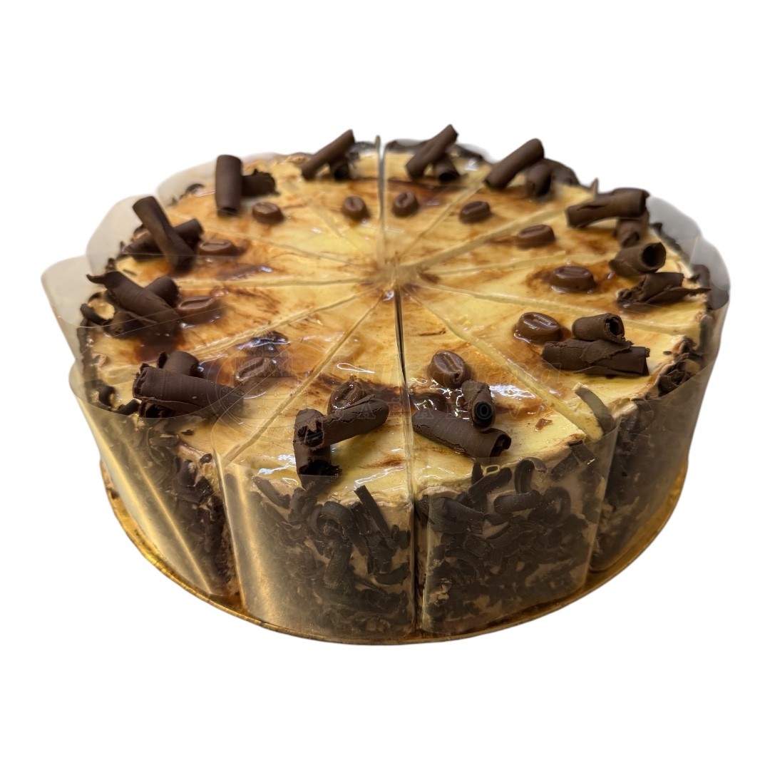 Mocca dort s čokoládovo-rumovou nádivkou, mocca-smetanovou náplní a kakaovým piškotem, zdobený čokoládovou ozdobou.