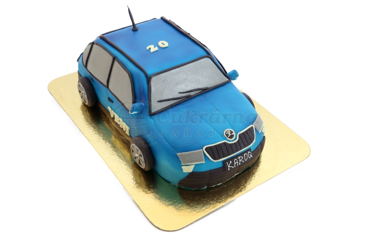 Dort ve tvaru auta Škoda Karoq. Dort je celý potažený velice chutným marcipánem, zdobený marcipánovými doplňky. Možno vyrobit libovolný model auta.