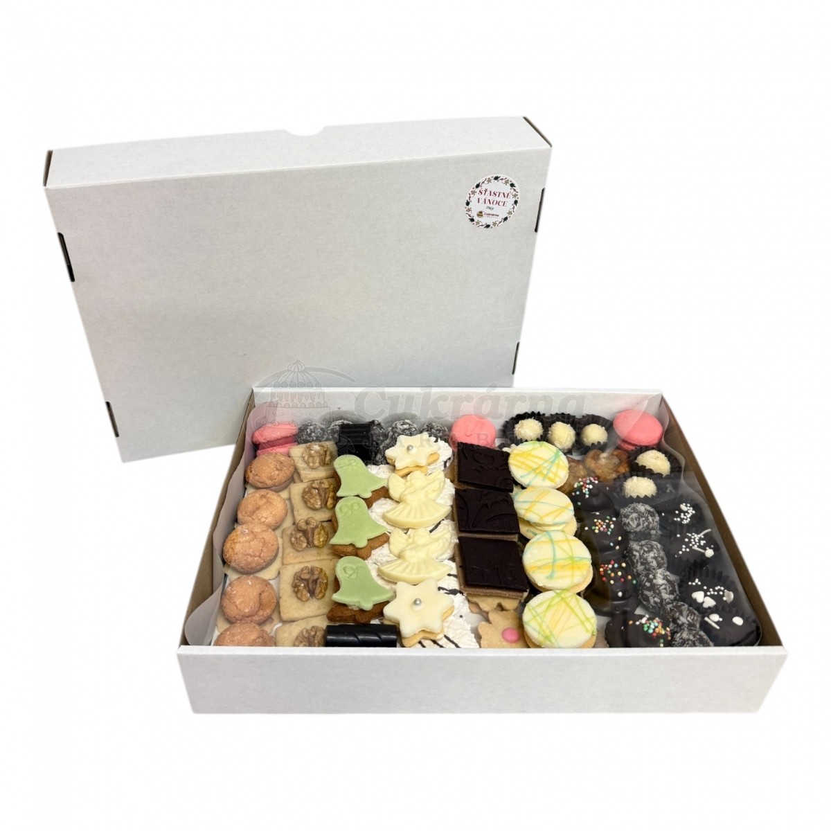 Jako každý rok pro vás připravujeme naše cukroví a ani letos to nebude jinak. V balení je cca 20 druhů cukroví. Můžete se těšit na klasiku v podobě velmi oblíbených vanilkových rohlíčků, lineckých květinek, třených rohlíčků a tyčinek nebo pravých kokosových pusinek. Nebude chybět několik čokoládových andílků nebo marcipánových zvonečků. Určitě nebudou chybět Rafaelo kuličky nebo laskonky a spousta dalších drůhů.
