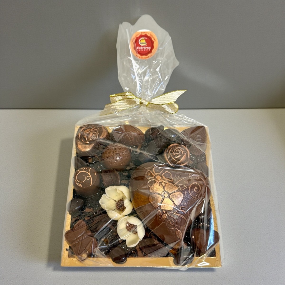 Luxusní čokoládové srdce z naší cukrářské dílny je ručně vyráběné z kvalitní čokolády a plněné pralinkami s různými lahodnými náplněmi. Každé čokoládové srdce vzniká s důrazem na poctivou řemeslnou práci a pečlivé zdobení.
