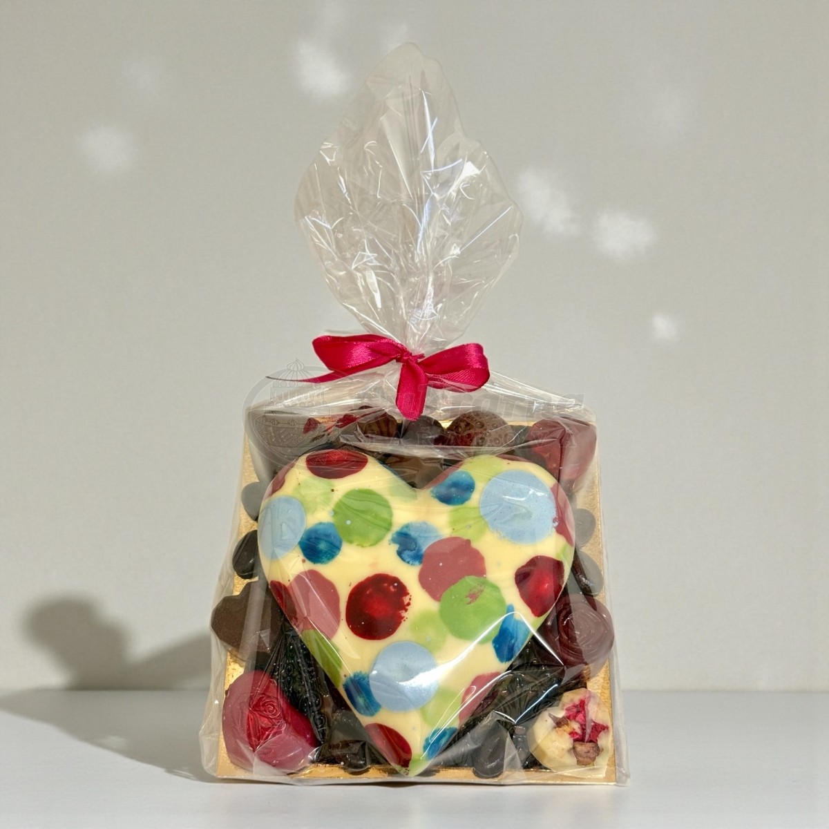 Luxusní čokoládové srdce z naší cukrářské dílny je ručně vyráběné z kvalitní čokolády a plněné pralinkami s různými lahodnými náplněmi. Každé čokoládové srdce vzniká s důrazem na poctivou řemeslnou práci a pečlivé zdobení.