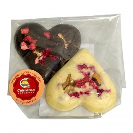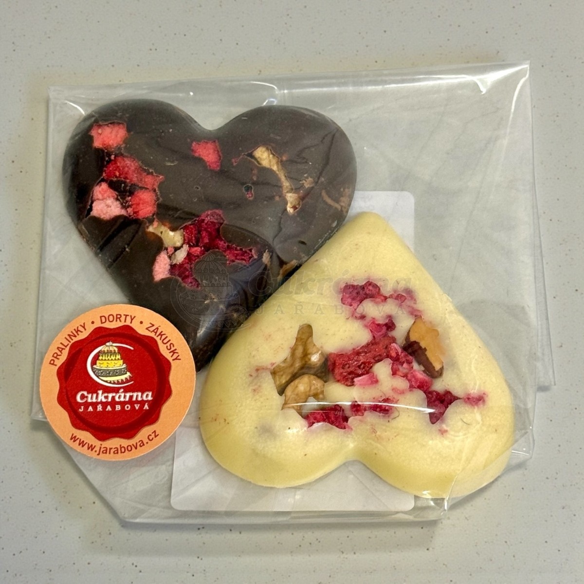 Ručně vyráběné čokoládové pralinky z kvalitní čokolády, bohatě plněné ořechy a vybraným sušeným ovocem. Každý kousek vzniká v naší cukrářské dílně s důrazem na poctivou řemeslnou práci a vyváženou chuť.