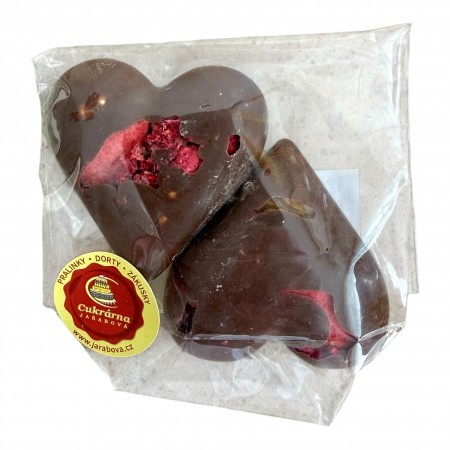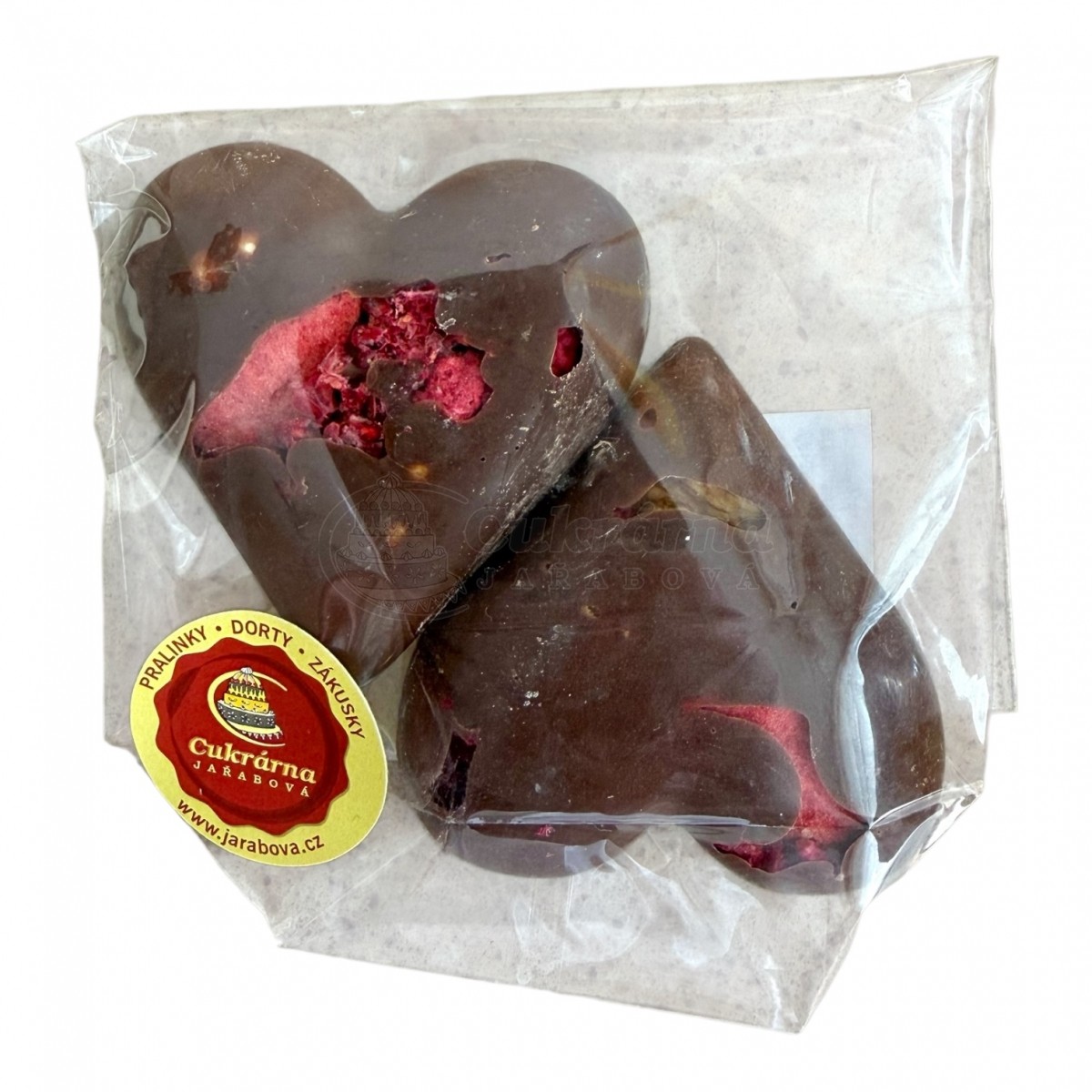 V tomto balení je 2x střední srdíčko z mléčné 43% čokolády v sáčku převázané stužkou.
