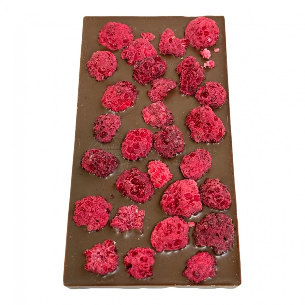 Dokonalé spojení sladké čokolády a příjemně nakyslých malin vytváří vyváženou chuť, která potěší každého milovníka ovocných čokolád.